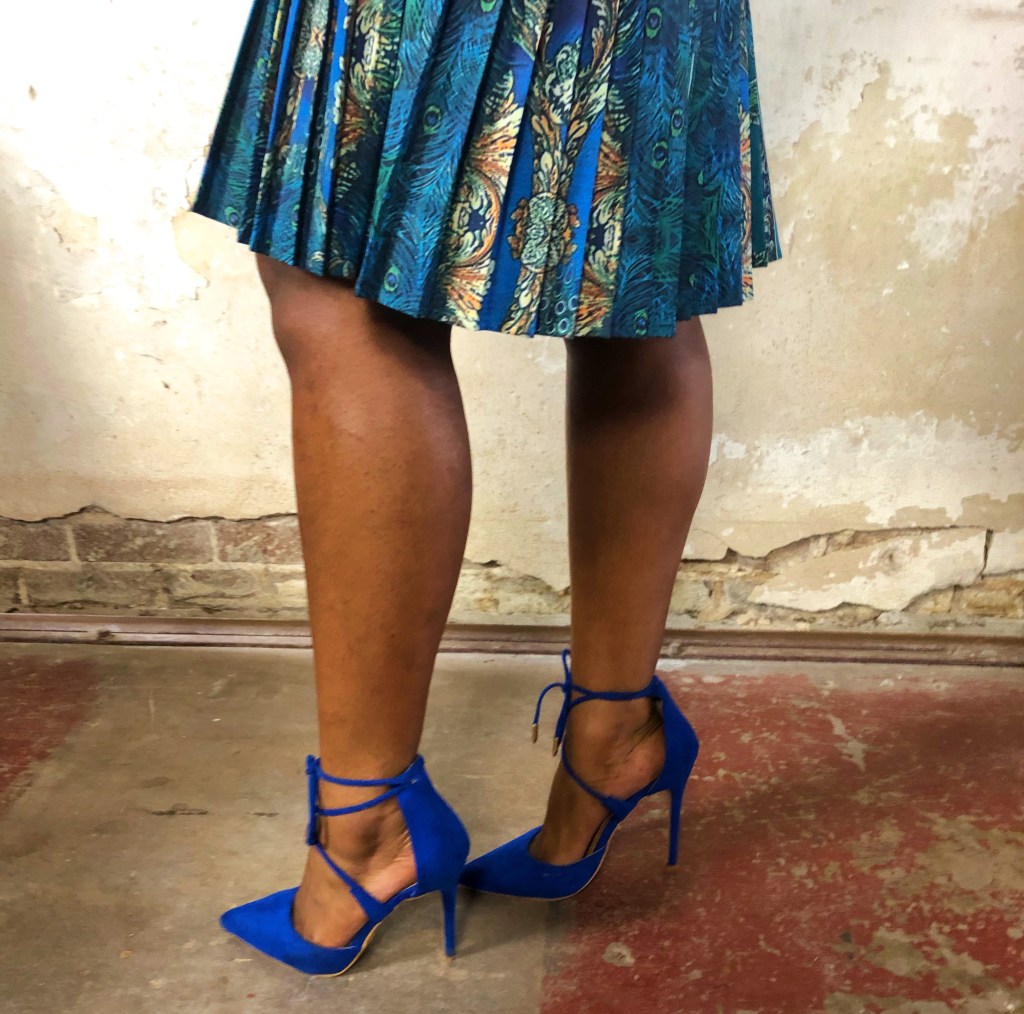 These shoes have been in my closet for years. I bought them becasue the vibe instantly reads corporate chic…they’re the perfect mix of buisness and sass. A pair of shoes that go seemlessly from day to night. I usually pull them out when I need a good pop of color added to my garb. This outfit already has so many tones of blue that I originally thought about adding a pair of nude colored heels, but in this case I figured why not go overboard and add more blue.